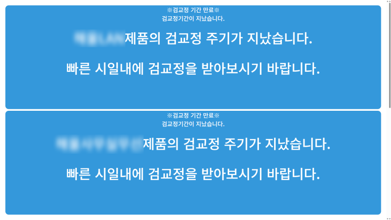 (검교정 주기 알람도 공지사항 팝업 알람과 같은 주기로 알람이 발생합니다.)