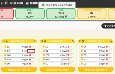 개별 알람제어도 정말 쉽게 켜고 끌 수가 있는데요 현황판에서 센서마다 우측에 시계모양 아이콘이 있는데