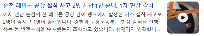 오늘은 요즘 밀폐공간 질식사고가 많이 있어서 사고예방에 있어 도움이 되고자 포스팅을 합니다.