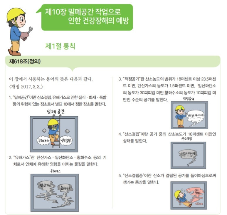 여름철뿐만 아니라 4계절 365일 어느 때나 밀폐공간 작업 시에는 꼭 가스 측정기를 착용하고 작업을 해야 합니다 밑에는 관련 법령입니다.