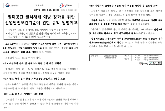 실제로 고용노동부에서는 [산업안전보건기준에 관한 규칙]일부 개정령안을 10월 10일까지 입법예고하였는데요