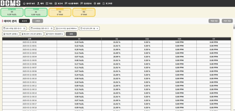 원하는 기기, 원하는 시간대 별로 조회하여 확인할 수 있고 해당 데이터를 엑셀이나 PDF로 다운받아서 관리 및 활용이 가능합니다.