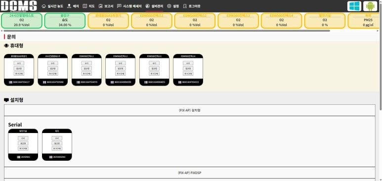 DCMS 프로그램에 로드인한 모든 기기에서 등록된 장비의 측정데이터를 실시간으로 확인할 수 있습니다.