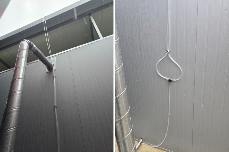 배관에 타공을 해서 고온에 견딜 수 있는 스틸배관을 삽입하고 고정합니다. 유지보수 편의를 위해서 가스가 충분히 식을 만한 포인트 부터는 투명 우레탄 호스를 이용했습니다.