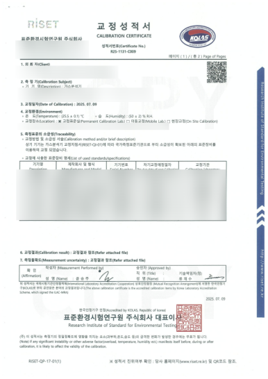 공식 KOLAS 성적서