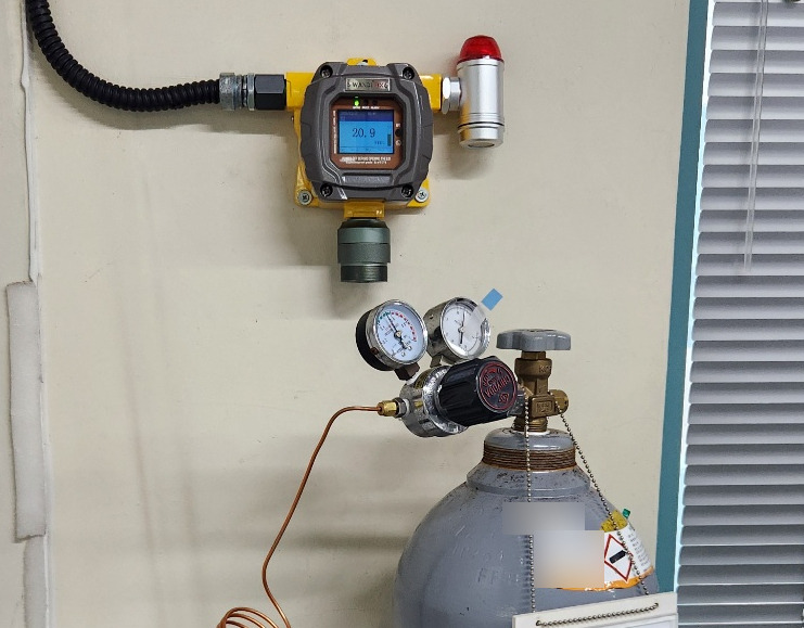 - 설치 위치: 각 가스 실린더 레귤레이터 직상단 벽면