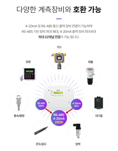 🔹다양한 계측기 연동 : 가스측정기, 압력계, 수위계, 온습도계 등 다양한 설치형 계측기와 호환